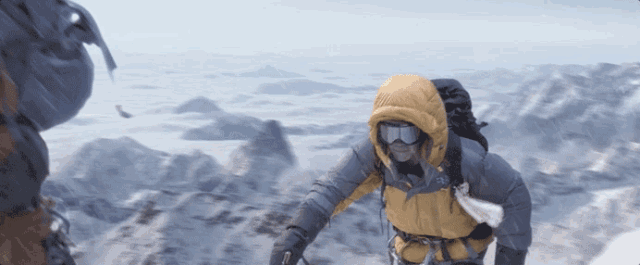 这个细节是导演、美术指导、造型师一起研究了真实登珠峰者的造型,特意去找加拿大本地著名登山家借来的。