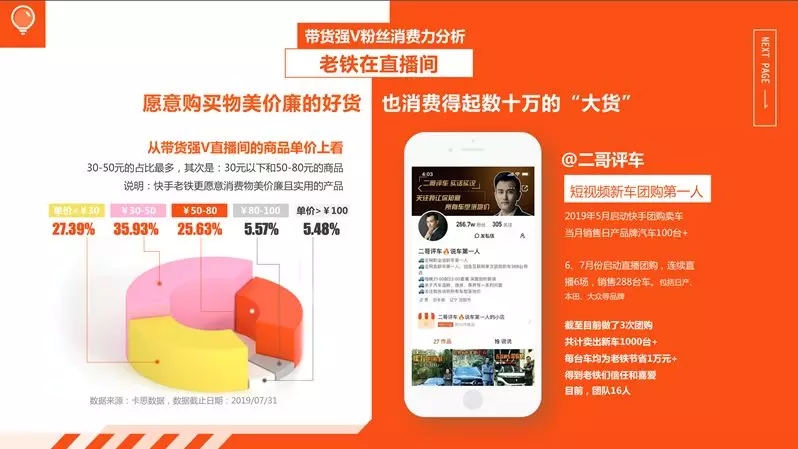 快手平凡的老铁也有流量,比如一位沈阳老铁“二哥评车”,在快手上用团购卖车的模式,连续6场直播卖掉了288台车,其中不乏日产、本田这样的品牌。