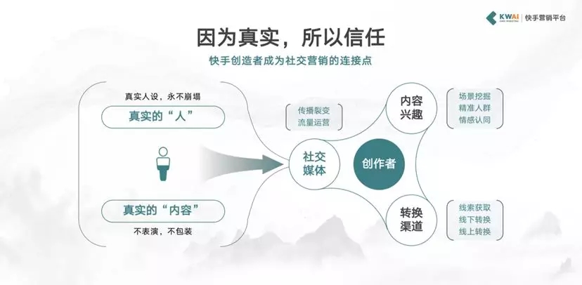 因为真实,所以信任。从内容形态看,快手用户创作的接地气内容好似社交颗粒,通过这些社交颗粒交朋友;从内容丰富度看,与那些创作套路明显,包装表演成分过重的爆款网红内容相比,快手原生态内容的真实与质朴,回归了个人化内容和生活故事本身,对用户吸引力更持久;从内容能效看,快手短视频内容突破了传播和销售的边界,视频内置购买渠道,平台内形成完整闭环,极大缩短了转化路径,提升了产品销售的两个核心指标:黏性和复购率。